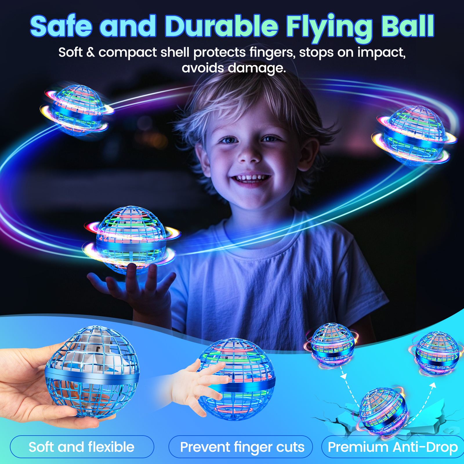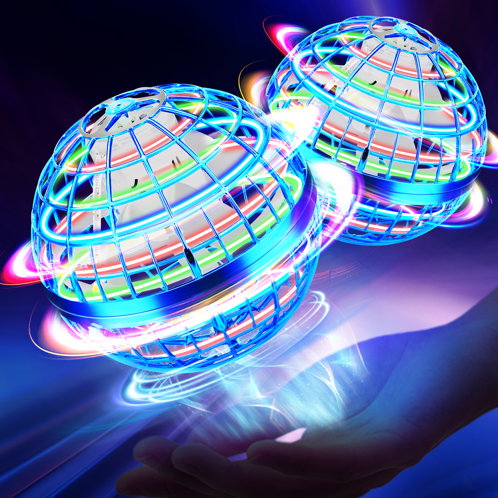 Flying Orb Ball Toy, Hand Controlled Hover Ball with LED Lights, 360° Rotating Boomerang Globe, Mini Drone Spinner for Kids, Ideal Birthday & Festival Gift for Boys Girls, 2 Pack – Blue&Blue